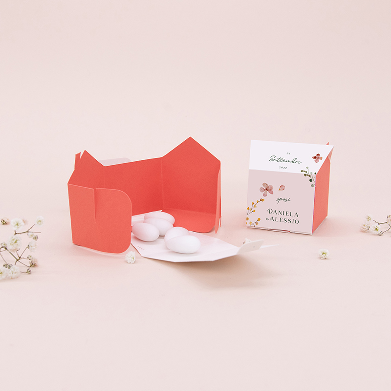 La casetta porta confetti viene inviata stesa con le istruzioni per il montaggio. Basteranno poche semplici piegature per confezionarla e in pochi istanti la tua bomboniera solidale sarà pronta!