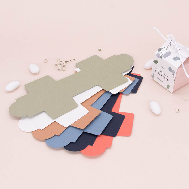 La scatoletta porta confetti viene inviata stesa con le istruzioni per il montaggio. Basteranno poche semplici piegature per confezionarla e in pochi istanti la tua bomboniera solidale sarà pronta!