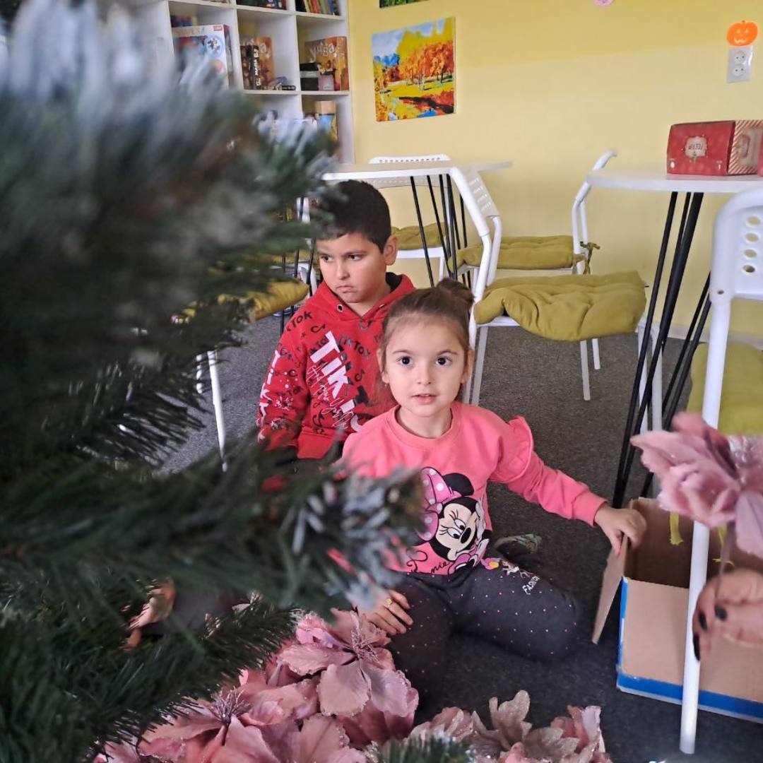Con l’arrivo del Natale, la ludoteca si è trasformata in un laboratorio di gioia. I bambini, con entusiasmo e creatività, hanno iniziato a decorare lo spazio. Al centro della scena, l’Albero di Natale, simbolo di speranza e nuove prospettive. Nonostante le difficoltà, come la mancanza temporanea di elettricità, l’energia dei piccoli non si è fermata: musica natalizia da un telefono, collaborazione e sinergia hanno riempito la stanza. Alcuni aprivano scatole, altri organizzavano le decorazioni con cura, distinguendo tra addobbi per l’albero, soffitto o finestre.