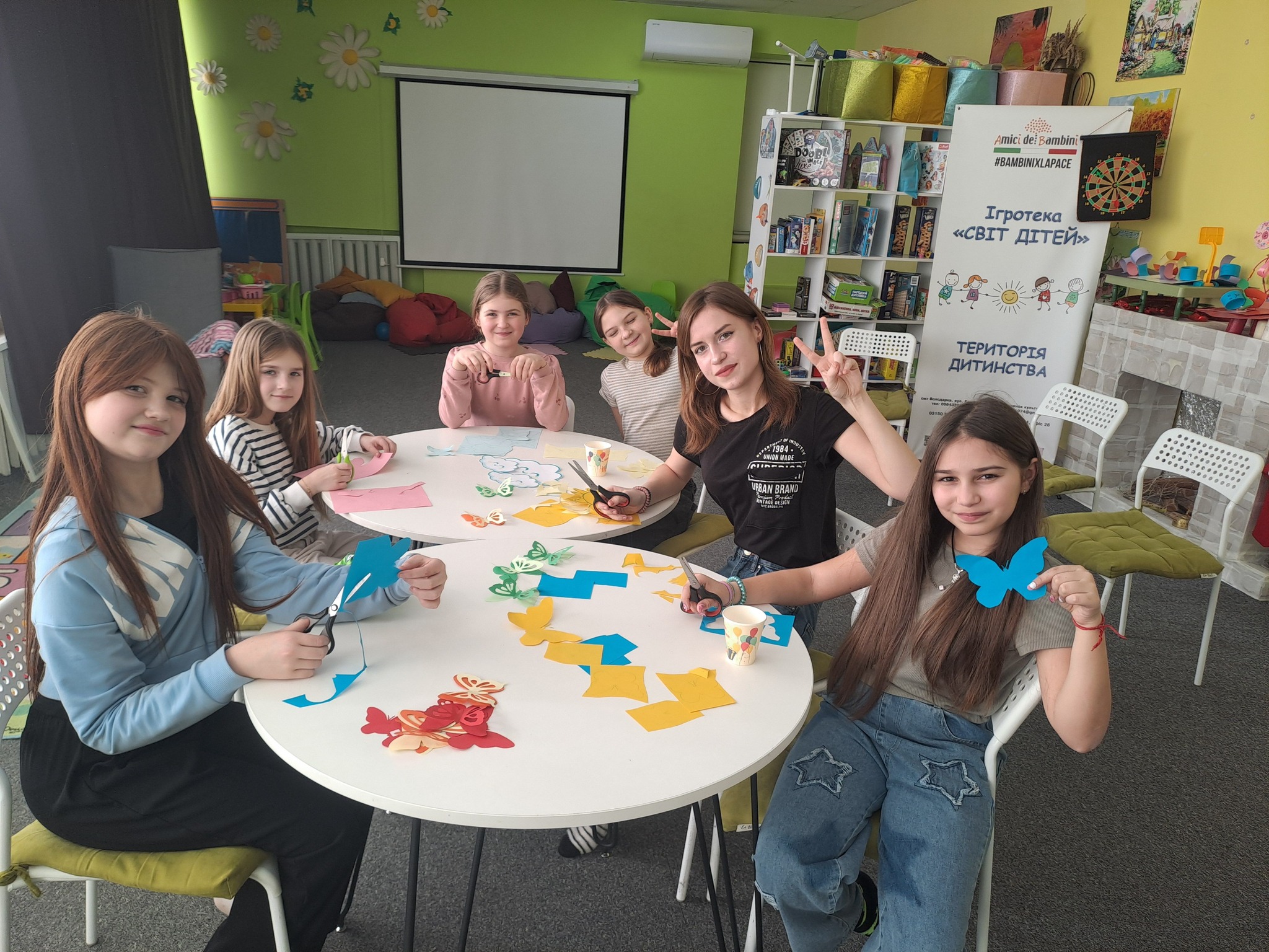 Fiori, farfalle e uccellini di carta hanno trasformato la ludoteca in un giardino fiorito, un angolo di serenità in cui i bambini hanno potuto esprimere la loro fantasia. Giorno dopo giorno, insieme al personale di Ai.Bi., hanno ritagliato, colorato e incollato figure primaverili, dando vita a un’opera collettiva che ha riempito lo spazio di gioia e speranza. Ogni finestra decorata è diventata un quadro vivente, un messaggio di positività che guarda al futuro con fiducia.