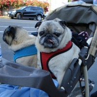 Ma poi di fronte a  te che in orario di punta hai bloccato una fila intera di lavoratori, per non far respirare smog a quel bimbo che nemmeno conosci, ecco che dal passeggino fa capolino un cane che si gode placido la passeggiata.