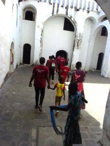 I bambini dell’orfanotrofio hanno potuto conoscere la storia del castello grazie alla guida turistica, che li ha accompagnati in un percorso educativo e interattivo. I bambini hanno visto le celle dove erano rinchiusi gli schiavi, le stanze dove vivevano i colonizzatori, le cappelle e le fortezze. Hanno anche posto molte domande, mostrando interesse e curiosità.
