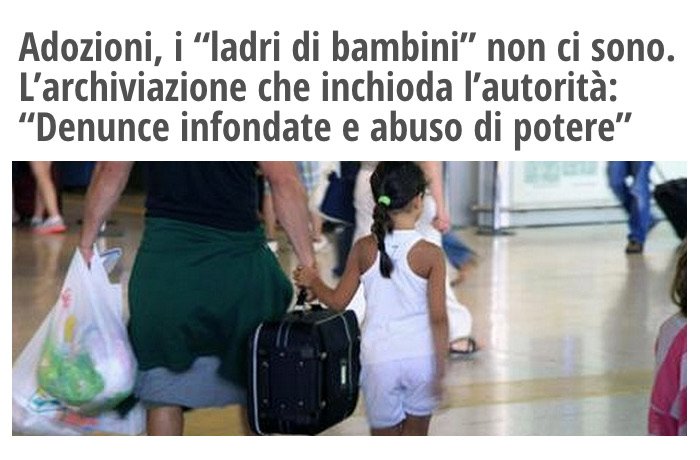 Riportiamo la nuova inchiesta Thomas Mackinson per Il Fatto QuotidianoAdozioni, i “ladri di bambini” non ci sono. L’archiviazione che inchioda l’autorità: “Denunce infondate e abuso di potere”