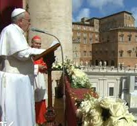 papaHa avuto un pensiero per tutti Papa Francesco nel messaggio “Urbi ed Orbi” del giorno di Natale. No alla tratta di esseri umani e alle tragedie della disperazione come quella di Lampedusa, basta alle guerre in Medio Oriente e protezione verso le popolazioni flagellate dalle calamità naturali. Una preghiera particolare è stata rivolta ai “tanti bambini, feriti e uccisi nei conflitti armati, e a quelli trasformati in soldati, derubati della loro infanzia.  E per la pace, ha chiesto di pregare con i credenti di altre fedi, ricordando “quanto è potente la preghiera”: un evidente riferimento agli esiti della veglia interreligiosa per la Siria da lui indetta a fine estate.