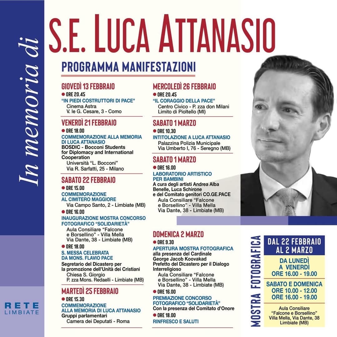 Mostre, incontri e celebrazioni: fino al 2 marzo, Limbiate dedica un programma speciale per ricordare l’Ambasciatore scomparso in Congo quattro anni fa
