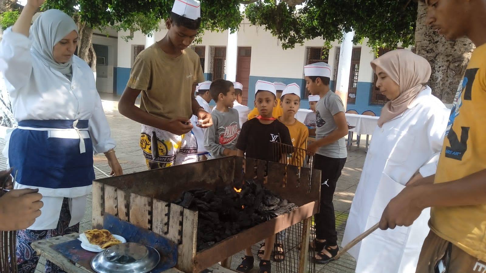 Il barbecue collettivo è stato organizzato dal centro Akkari, che ha preparato una grigliata in giardino per i bambini su loro richiesta. Il barbecue si è tenuto sulla terrazza del centro, dove i bambini si sono riuniti, hanno indossato i grembiuli e hanno iniziato a preparare la carne, a condirla e a preparare gli spiedini da mettere sul fuoco. I cuochi hanno acceso il fuoco e hanno chiamato i bambini a guardare con loro mentre cuocevano gli spiedini. I bambini erano così affamati che non smettevano di chiedere se era abbastanza buono per iniziare a mangiare. Il barbecue collettivo è stato un momento di convivialità e di condivisione per i bambini, che hanno partecipato ai preparativi e si sono gustati il cibo.