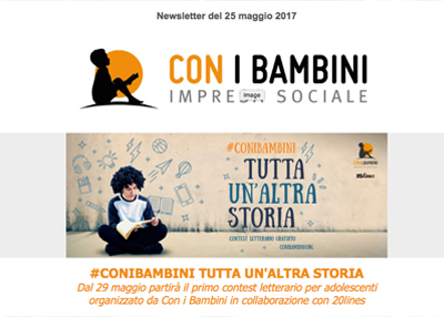 Dal 29 maggio partirà il primo contest letterario #ConiBambini Tutta un’altra storia, per adolescenti organizzato da Con i Bambini in collaborazione con 20lines.