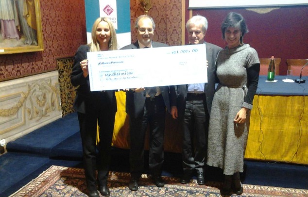Roma, 30 novembre 2016. L’onorevole Edoardo Patriarca, presidente dell’IID (Istituto Italiano della Donazione), Stefano Cerrato, responsabile del Terzo Settore per il Banco Popolare, consegnano a Marzia Masiello, referente per le relazioni istituzionali di Ai.Bi., il riconoscimento che l’IID e il Banco Popolare hanno assegnato ad Amici dei Bambini per il progetto “Un Paese ci vuole”, dedicato ai bambini di Amatrice per aiutarli ad affrontare il trauma del terremoto.