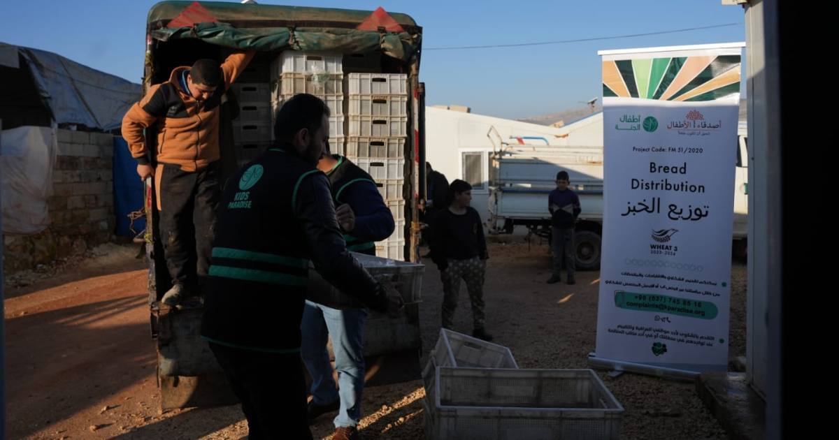 La distribuzione del pane è uno degli interventi del progetto “Sviluppo della filiera produttiva del frumento nel nordovest siriano”, sostenuto dai fondi otto per mille a gestione statale e gestito da Ai.Bi. insieme al partner locale Kids Paradise, per combattere l’emergenza alimentare