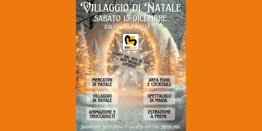 Sabato 13 dicembre, l’organizzazione sarà presente al Villaggio di Natale organizzato da Deba Design, marchio di Formanova srl di Meda, realtà familiare da sempre attenta al benessere dei bambini e sensibile al tema dell’affido. Dalle 10.00 alle 17.00, il Villaggio aprirà al pubblico con bancarelle a tema, uno spettacolo di magia, la possibilità di visitare lo showroom aziendale e molte altre attività pensate per coinvolgere grandi e piccoli.